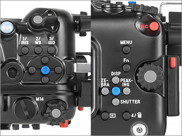 最小限の動きでアクセスができるよう、右手グリップ周辺に操作レバー/ボタンを配置。水中での撮影に集中することができます。