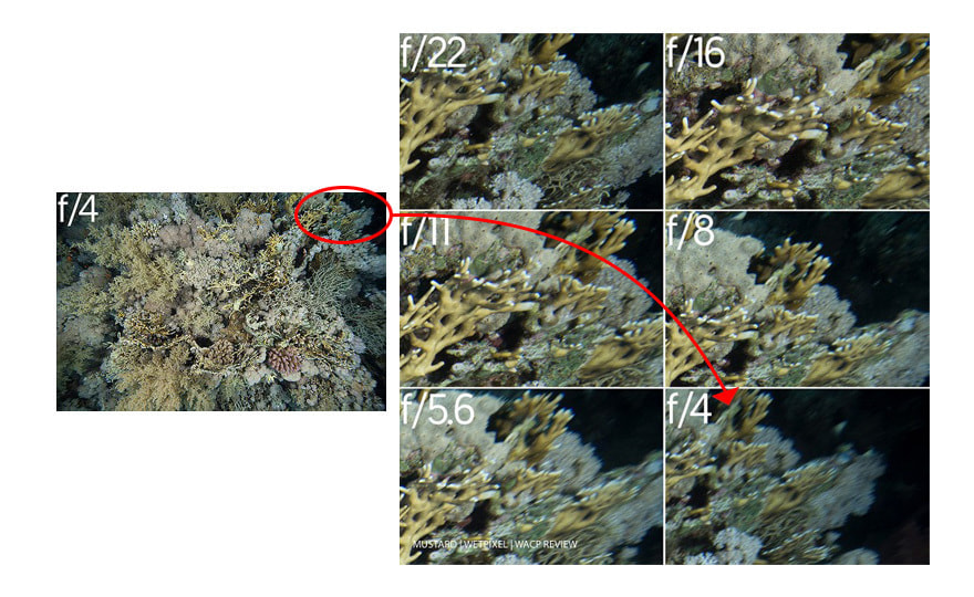 WACP-1の方が画角が広いのにもかかわらず、WACP-1の「f/5.6」の画質は、16-35mmの「f/16」の画質に匹敵します。