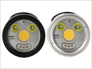 最大3000ルーメンの大光量と色温度5700K/高演色性Ra95(ワイド)のPremiumカラーは、水中の色を鮮やかに再現します。
