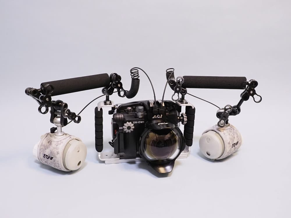 現在の作品撮りのメイン機材は、OM SYSTEM OM-1& AOI-UH-OM1。マクロ・ワイドともに、ストロボ(AOI-UCS-Q1-RC)2灯の仕様です。
