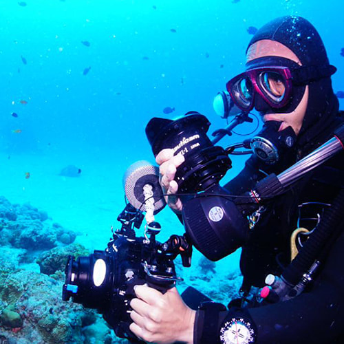 日ごろは、マクロ用(マクロレンズ仕様)とワイド用(フィッシュアイレンズ仕様)のハウジング2台持ちで撮影活動を行っている水中写真家の上出俊作さんに、MWL-1のテスト撮影をお願いしました。画角や画質の印象はどうだったのか、聞きました。