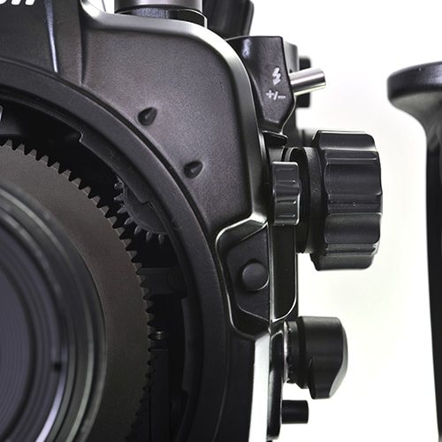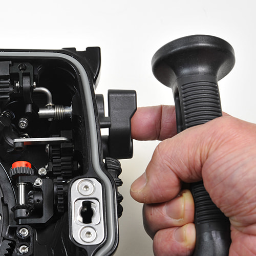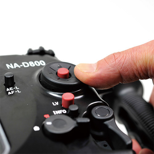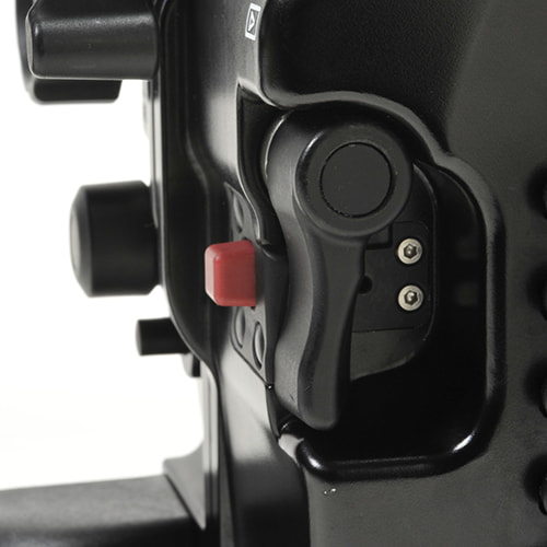 陸上と変わりない直感的な操作を可能にしたコントローラーです。水中での操作性向上のため、あえてハウジング最右端にセレクターの位置をシフトしています。【特許取得】