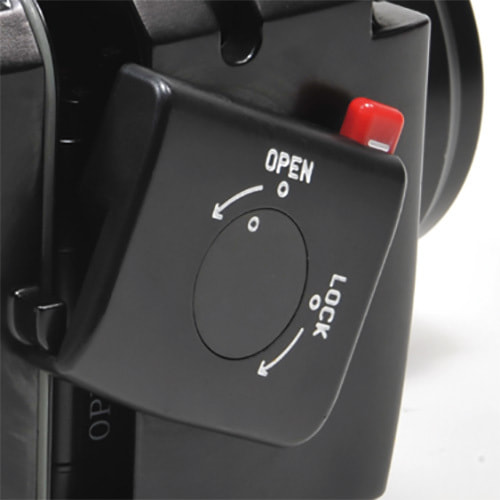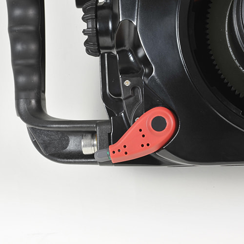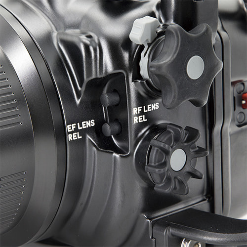 レンズポートの着脱は、ねじ込み不要のバヨネット方式。ロック付きのレバー操作による簡単な換装と確実なシールを両立しています。【特許取得】