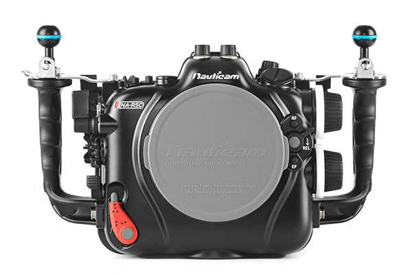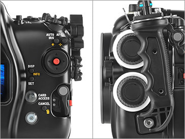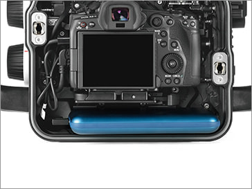 重要なコントロールはグリップ周辺に配置され、操作ボタン/レバーなどにすばやくアクセスできます。グリップを握ったまま操作できる大型ダイヤルとともに、水中での撮影に集中することができます。