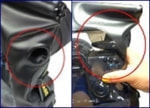 可動性のあるシャッター専用ホールを側面に装備。シャッターボタンが押しやすく、様々な機種に対応します。