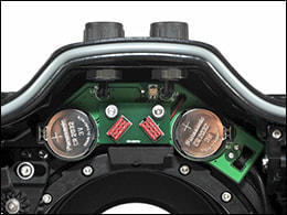 ポート/レンズ交換の際、フロント側からボタンを押すだけでセンサーのリセットが可能。ハウジング開閉の必要がなく、撮影現場で求められるクイックアクションに対応します。