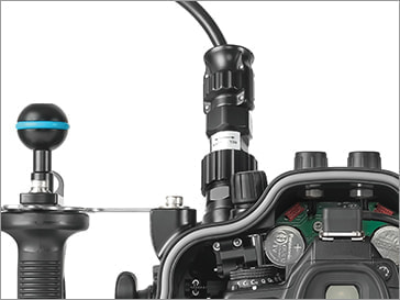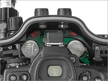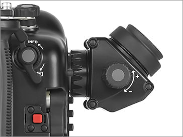 水中での操作性を向上させるため、操作ボタン/レバーを左右グリップに集約させました。グリップから手を離すことなく、メイン電子ダイヤル、サブ電子ダイヤル、マルチファンクション、ダブルサムレバーなどの操作部に素早くアクセスできます。