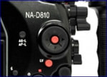 背面のマルチセレクター対応インターフェイスは、カメラ本体の形状を継承。陸上と変わりない直感的な操作が可能です。水中でのアクセス性を向上させるため、ハウジング最右端にレイアウトをシフトさせました。