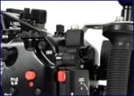 カメラ上部の操作ボタンをそれぞれハウジング側面と背面からコントロール。動画撮影の要となる2つの設定をグリップから手を離すことなく右手親指で素早く操作できます。