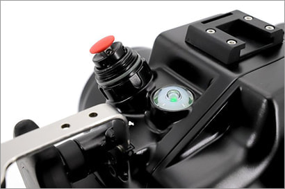 万一の浸水に音と光で警告する「リークセンサー」と、ハウジング内部の空気を陰圧にすることで、陸上でシール状態がチェックできる「圧力センサー」を標準装備。別売の『バキュームバルブ』を追加することで「バキュームリークセンサー」フルシステムを組むことができます。