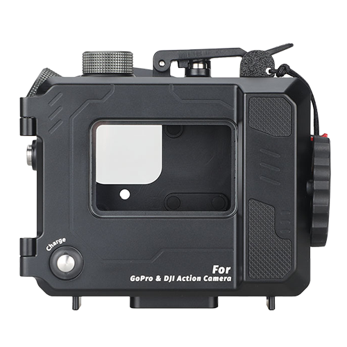コンパクトで堅牢なアルミ合金製はハウジングは、耐圧水深100m。大深度やタフな環境でもアクションカメラの使用が可能となります。