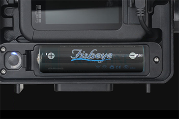 ハウジング内に18650タイプのバッテリーを装填できます。カメラとバッテリーを接続することで電源を供給することができ、長時間の撮影に対応します。