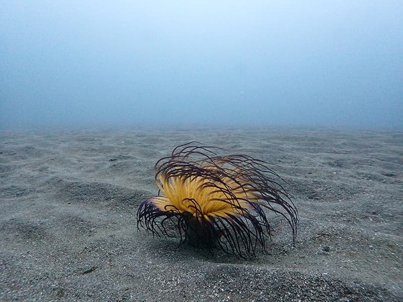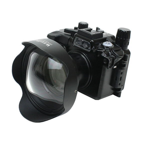 フラットポートでの水中画角は、水の屈折率によりマスターレンズ本来の画角より狭くなります。エアレンズは、ドーム内の空気の屈折率とレンズの屈折率を利用し、水中でもマスターレンズ本来の画角で水中撮影が可能な水中撮影専用ワイドコンバージョンレンズ。