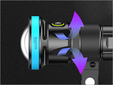 最大13000ルーメン、5600K、演色性Ra90の大光量と、ドームレンズによるムラの無い150°の配光は、水中世界を色鮮やかに照らし動画撮影の光源や広範囲のサーチライトに最適です。