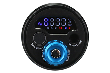 照射光量、点灯残時間、リモートコントロール/EFモードなどの情報をボディ背面のLCDパネルに表示。プッシュボタンと一体になった回転式の調光ダイヤルとあわせて、水中での視認性と操作性を高めています。