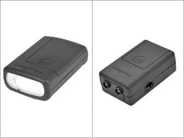 NAミニマニュアルフラッシュトリガーXT(右:別売オプション):マニュアル発光専用のフラッシュトリガーで、連写も可能。