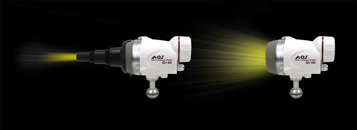 Q1-RCのテストボタンを長押しすると、2秒間連続的に発光(モデリング発光)となり、ストロボの瞬間光では判断しにくい照射範囲が目視で確認できます。特に、照射位置の調整がシビアとなるスヌート撮影では、威力絶大です。