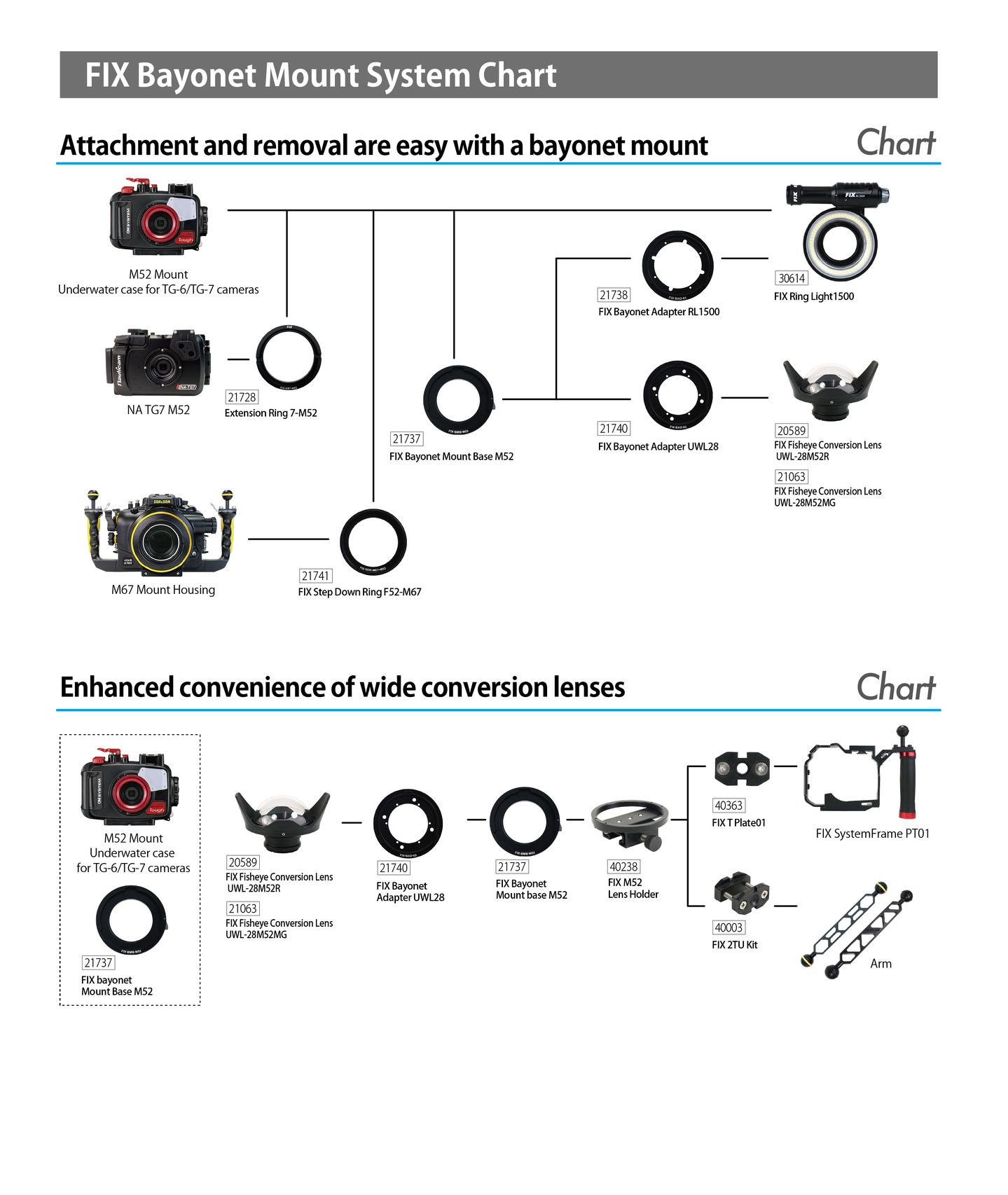 Converts the M52 mount/magnetic mount of the “FIX Fisheye Conversion Lens UWL-28M52R/MG” to a bayonet mount.