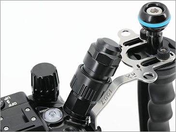 ハウジング上部にオフセットされたM16アクセサリーポートからはHDMI出力が可能。外部モニターハウジングで高解像4K動画撮影をサポートします。