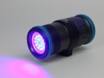 高輝度青色LEDを18個搭載し、最大10,800mWの大光量を実現。約115度のワイド光は、蛍光発光の静止画、動画など、撮影用ライトとして威力を発揮します。