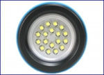 ボディ背面にレイアウトされたLCDパネルに、照射光量、バッテリー残量、点灯可能時間などを表示。バックライトを内蔵しているので水中での視認も良好です。