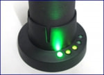 充電用の専用クレードルには、5段階で進捗状況を表示するLEDインジケーターを装備。バッテリーを装填すると残容量が表示されるので、スペアバッテリーの充電状態確認にも便利です。