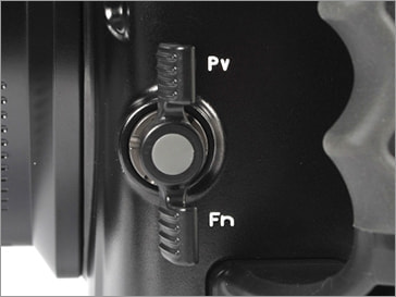 カメラ本体前面の「プレビューボタン」と「ファンクションボタン」にシーソー式レバーで対応。グリップを握ったままでもアクセスでき、被写界深度の確認や割当機能に素早いアクセスが可能です。
