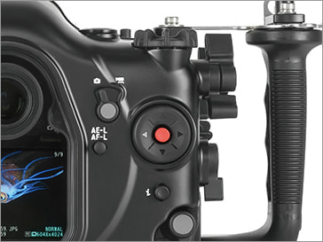 水中での操作性を向上させるため、操作ボタン/レバーを左右グリップに集約させました。グリップから手を離すことなく、メイン電子ダイヤル、サブ電子ダイヤル、マルチファンクション、ダブルサムレバーなどの操作部に素早くアクセスできます。