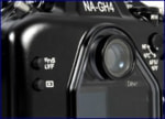 背面のボタン操作ひとつでEVFとLCDモニターを切り替え可能。専用LCDパネルに交換すれば、水中での視度調整が可能な『スーパービューファインダー』『45スーパービューファインダー』も取り付けられます。