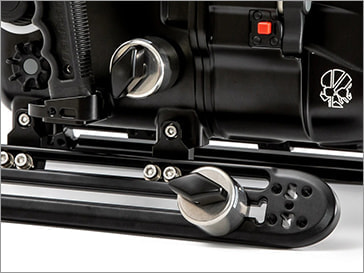 重要なコントロールはグリップ周辺に配置され、操作ボタン/レバーなどにすばやくアクセスできます。グリップを握ったまま操作できる大型ダイヤルとともに、水中での撮影に集中することができます。