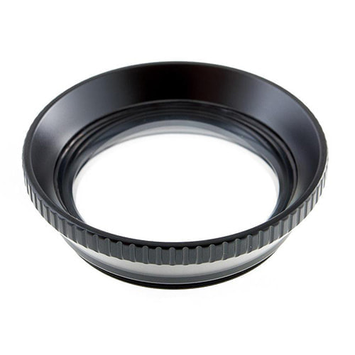 2枚のレンズの間の空気の層による光の屈折を利用したレンズです。高倍率ズームを搭載したカメラハウジングは、ポートが長いためワイド端ではケラレが発生してしまいますが、本製品はワイド端からケラレなく使用でき、カメラ本来のワイド感を水中で引き出します。