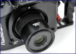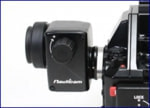 カメラに付属のクリップオンフラッシュを取り付けてビルト・イン、オプティカルケーブル接続による外部ストロボ発光が可能です。
