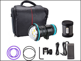 付属品 | Li-ionバッテリー6800、WFチャージャー、ダイレクトベース、YSベース、ボディOリングセット(PL/RD)、スペアOリング、Oリングリムーバー、Oリンググリス、六角レンチ、固定ネジ、ドームレンズカバー、バッテリー保護キャップ、レインカバー、キャリングケース |