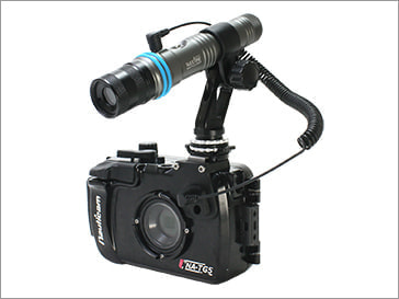 最大光量1000ルーメンのワイド光と、光に敏感な生物の撮影に役立つレッド光を搭載。電源 ボタンのみでワイド100% ⇒ ワイド50% ⇒ ワイド25% ⇒ レッド100% ⇒ レッド50% ⇒ 0%の調光が可能です。