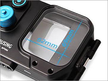 69×62mmの大型ウィンドウを採用。さまざまなレンズ位置のスマートフォンに対応します。
