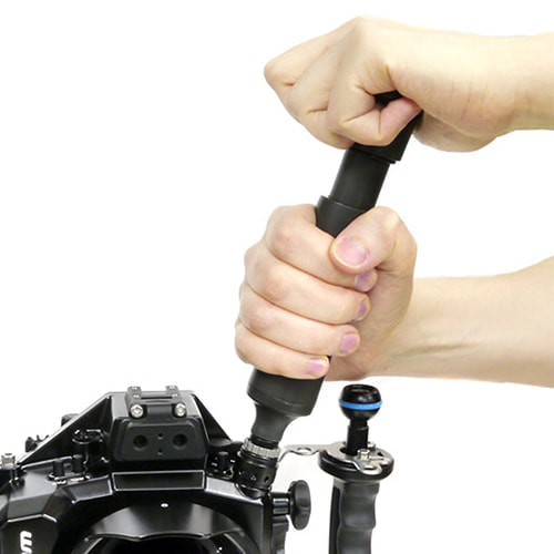 レギュレーターのインフレーターホースに接続し、ハウジング内部のエアを吸引。大きなビデオハウジングなどにおすすめです。