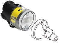 「スヌートチューブ」の組み合わせにより、約22°/28°/41°/54°の照射角調節が可能。水中で簡単に着脱できます。