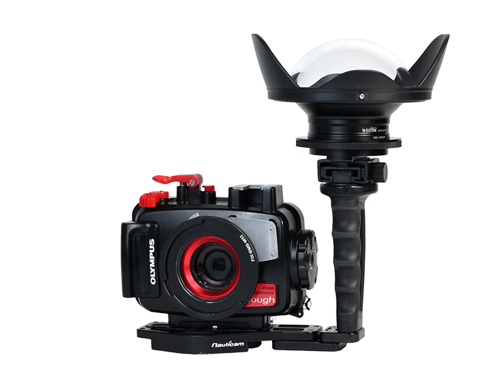 ●水中撮影専用に設計されたワイドコンバージョンレンズです。焦点距離24mm(35mm判換算)のレンズで使用した場合、倍率0.47、約150°の超広角撮影が可能です。