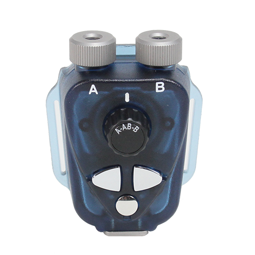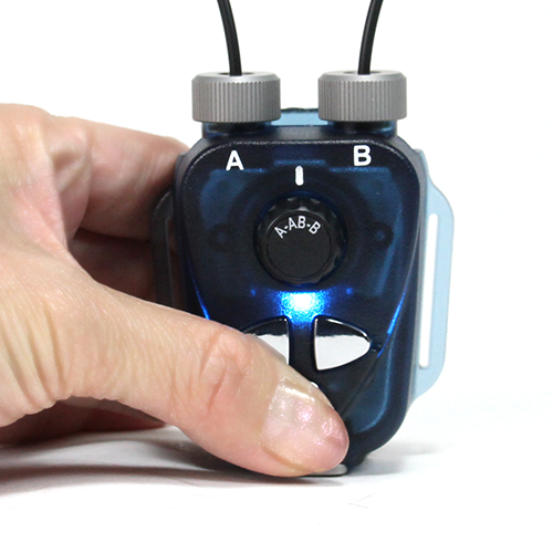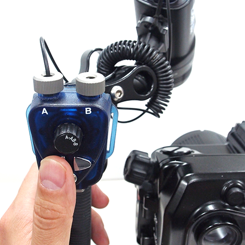 A・B2カ所の光ファイバー差し込み口それぞれに接続したライトを片方ずつ、またはAB同時コントロールのいずれかを選択可能。