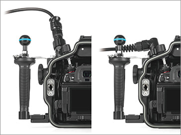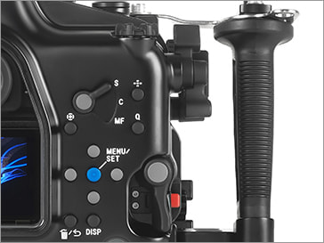 コントロールは、ハンドルに簡単に届く範囲に露出とフォーカスの基本的な操作が配置され、直感的な操作ができます。右ハンドルの近くにあるデュアルサムレバーは「REC」ボタンと「AF-ON」ボタンへ、またデュアルアクションレバーは「Fn1」および「Fn2」ボタンにアクセスでき、カメラ本体の操作が容易に行えます。