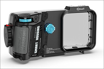 スマートハウジング専用設計のコンバージョンレンズをオプションで用意。超広角撮影からマクロ撮影まで、従来のスマートフォンハウジングの常識を超えた本格的な水中撮影も可能です。