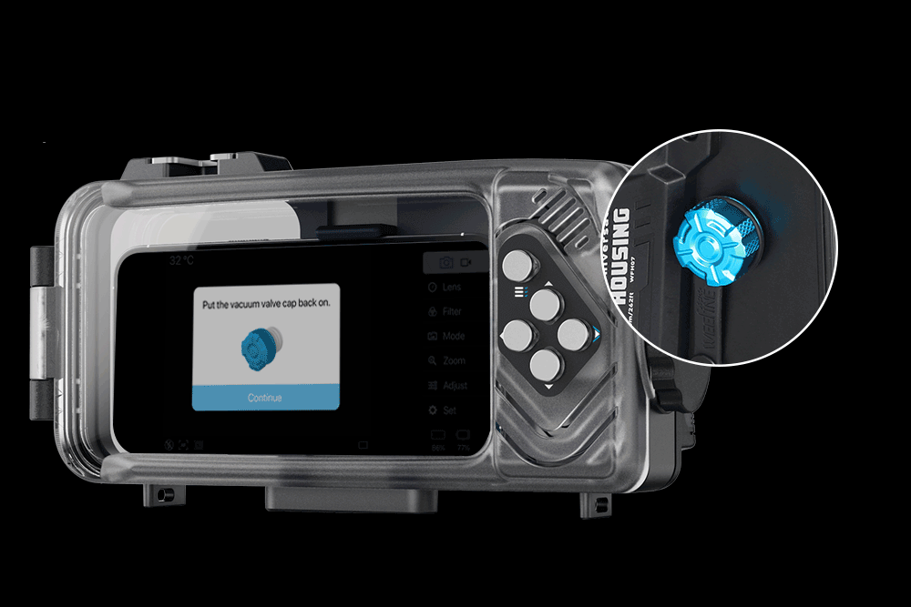 ハウジングの浸水リスクを軽減する『バキュームシステム』を標準装備。アプリの操作から自動的にハウジング内を陰圧にし、事前の防水チェックをより確実なものにします。