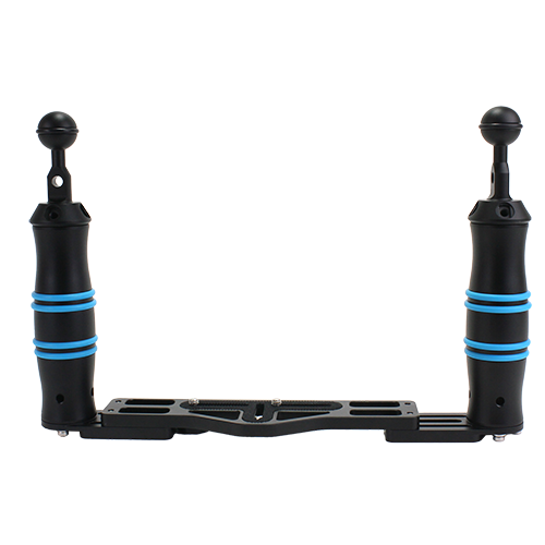 ハウジングを右手で握ったまま操作ができるように、シャッターレバー、コントローラーホイール、背面ボタンを配置。通常のカメラや水中ハウジングと同様に直観的に操作ができます。ダブルグリップを使用時など、グリップを握ったままシャッターがきれる「延長シャッターレバー」も付属しています。