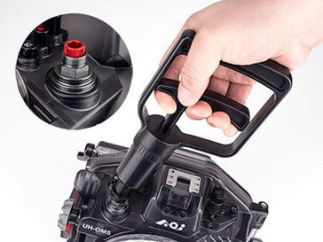 マクロやワイドなど撮影状況に応じて、レンズポートをユーザー自身で交換することができます。レンズポートは金属製のポートロックリングで確実に固定するシステム。ポートロックリングを回転させることで簡単に着脱できます。豊富なAOI製レンズポートはもちろん、オリンパス社製OM-Dマウント用のレンズポートも使用可能です。