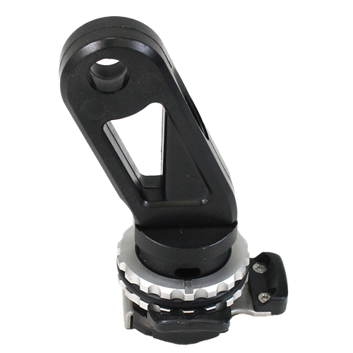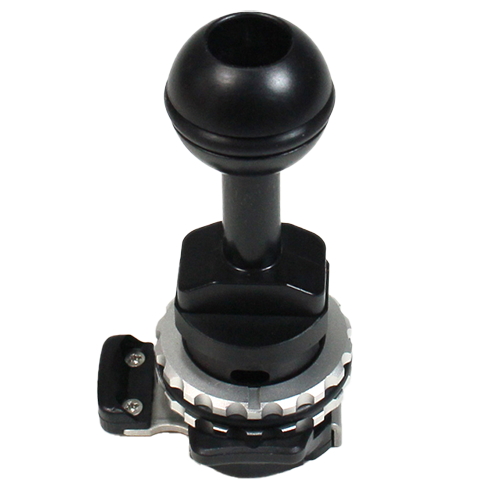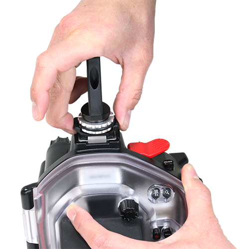 A short arm attached to cold shoe of housing or lens port. By an original locking mechanism, you can put/take off easily and fix it certainly.