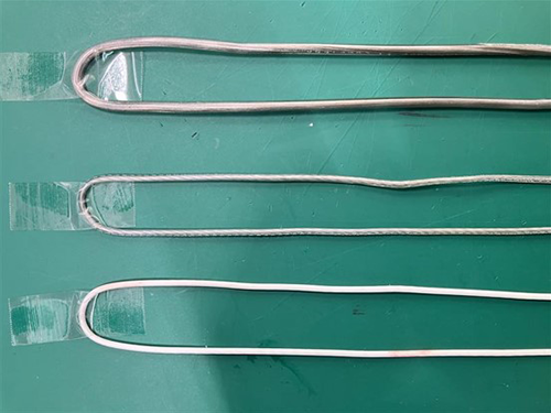 ヒートエレメント(ヒートベスト内部の電熱線など)に関して、複数の素材、またその形状や太さにおいて、もっとも効率的かつ安全性の高い設計を目指し検証を行っています。まず、ヒートエレメントの素材を当初の金属製からカーボンファイバー製に変更いたしました。また、ヒートエレメントの直径および被覆の厚さを従来よりも太く厚くいたしました。それにより、従来のヒートエレメントから格段に耐久性を高めることができました。