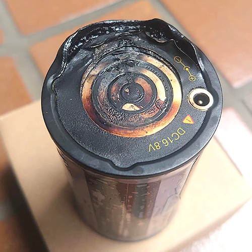 発熱・溶解してしまったリチウム電池