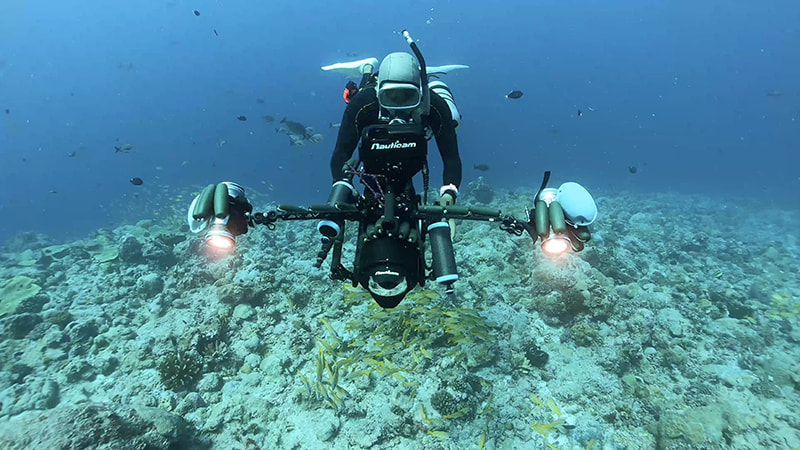 8K時代に突入した2019年、本格的にシネマカメラによる8K水中動画撮影へ取り組むことになりました。8K水中動画撮影は他メーカー製ハウジングを使って何度か行っていましたが、NA GH5SVの経験から自分で所有するならやはりNauticamがいいと考えました。Nauticamは他社製に比べてコンパクトで手になじみ、水漏れを感知するバキューム機能は安心感があります。オプションのコンバージョンレンズの解像感にも文句はありませんでした。 ただ、日本初のオーダーだったので、レンズやポートの選択に時間がかかりました。フィッシュアイ社のスタッフが根気よくと本社と連絡を取り対応してくれました。このハウジングでトンガのザトウクジラ、パラオでは魚たちの大産卵などを撮影しました。