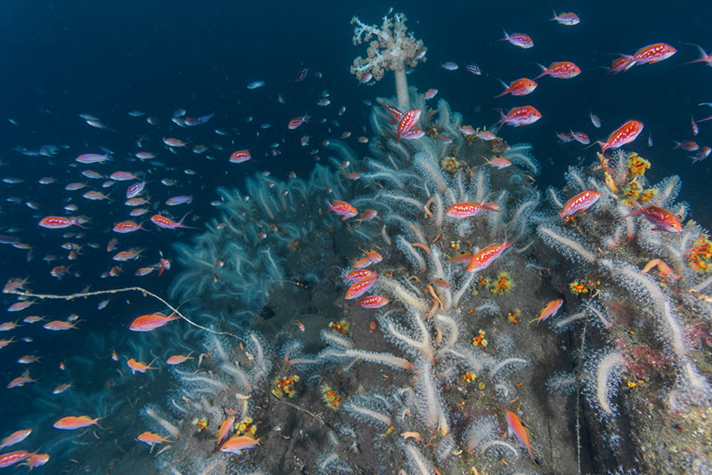 西伊豆・平沢のボートポイント「淡島」の深場の根は、サクラダイやナガハナダイ、アカオビハナダイが舞い踊るワンダーランドでした。