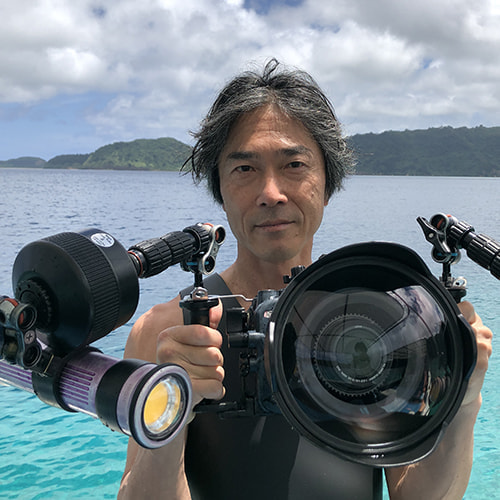 1964年、千葉県生まれ、新潟県育ち。幼少期から釣り好きの父親に連れられて海に親しむ。1987年、ほぼダイビング経験がないまま、中村宏冶氏主宰の日本水中映像株式会社に入社。同社水中カメラマンとして、道頓堀からバイカル湖、北極圏など多様な水環境を撮影。NHK「Wild Life」、BBC「Blue Planet II」などの自然ドキュメンタリー番組や、映画、コマーシャル、展示映像など数多くの撮影を担当。各地のダイバーや研究者の協力を得て、ギンザメの繁殖行動やイワシクジラの摂餌行動など貴重な生態も数多く撮影している。